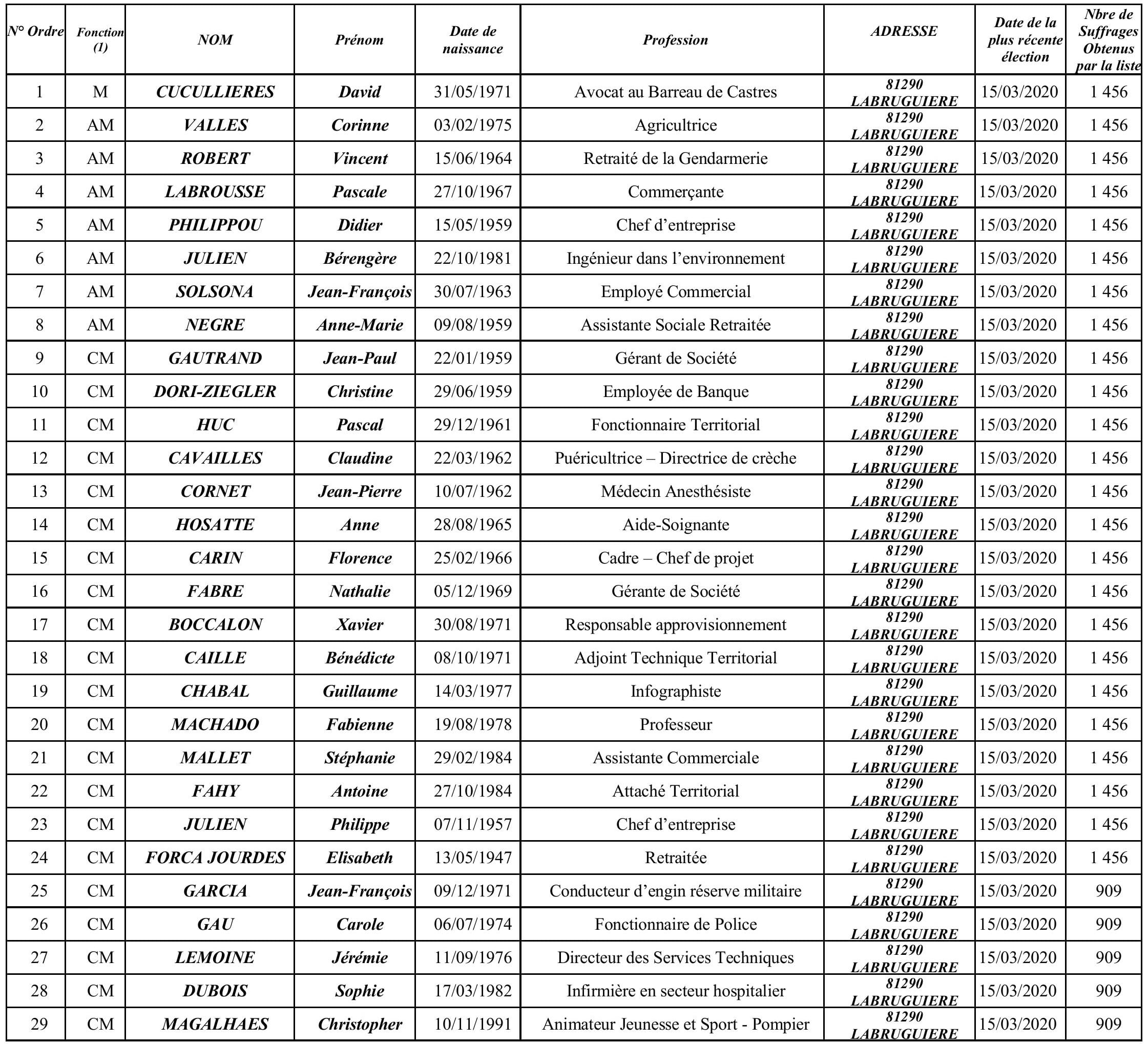 Tableau du Conseil Municipal